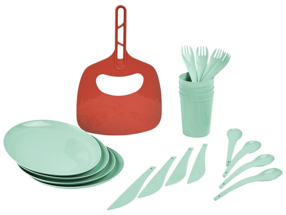 | Комплектация | салатник с крышкой 4 л 1 шт, тарелки d=20 см 4 шт, стакан 0.4 л 4 шт, ложки 4 шт, вилки 4 шт, ножи 4 шт, веер для раздува мангала 1 шт |