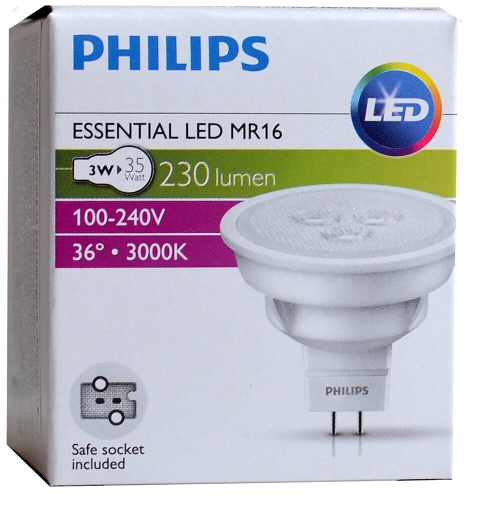 Отзывы на Лампочка светодиодная Philips Софит MR16 GU5.3 3Вт 220В 230Лм 3000К Теплый белый, упаковка 10шт