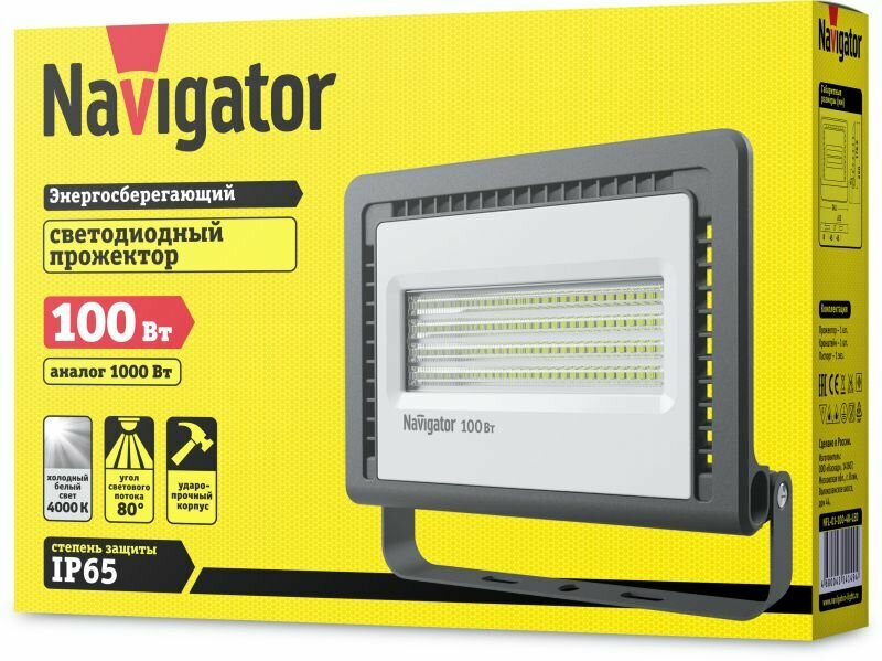 Светодиодный прожектор для улицы Navigator, 100Вт, 4000К, IP65 3 504 ₽