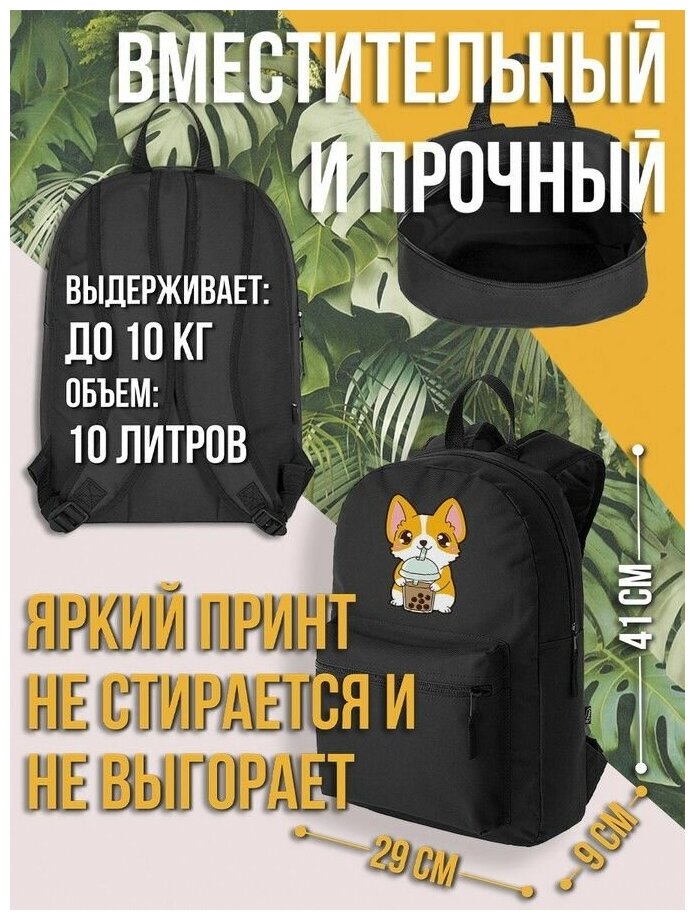 Отзывы на Черный школьный рюкзак с DTF печатью Корги Сказки, Скетчи, Милота, собака - 1006