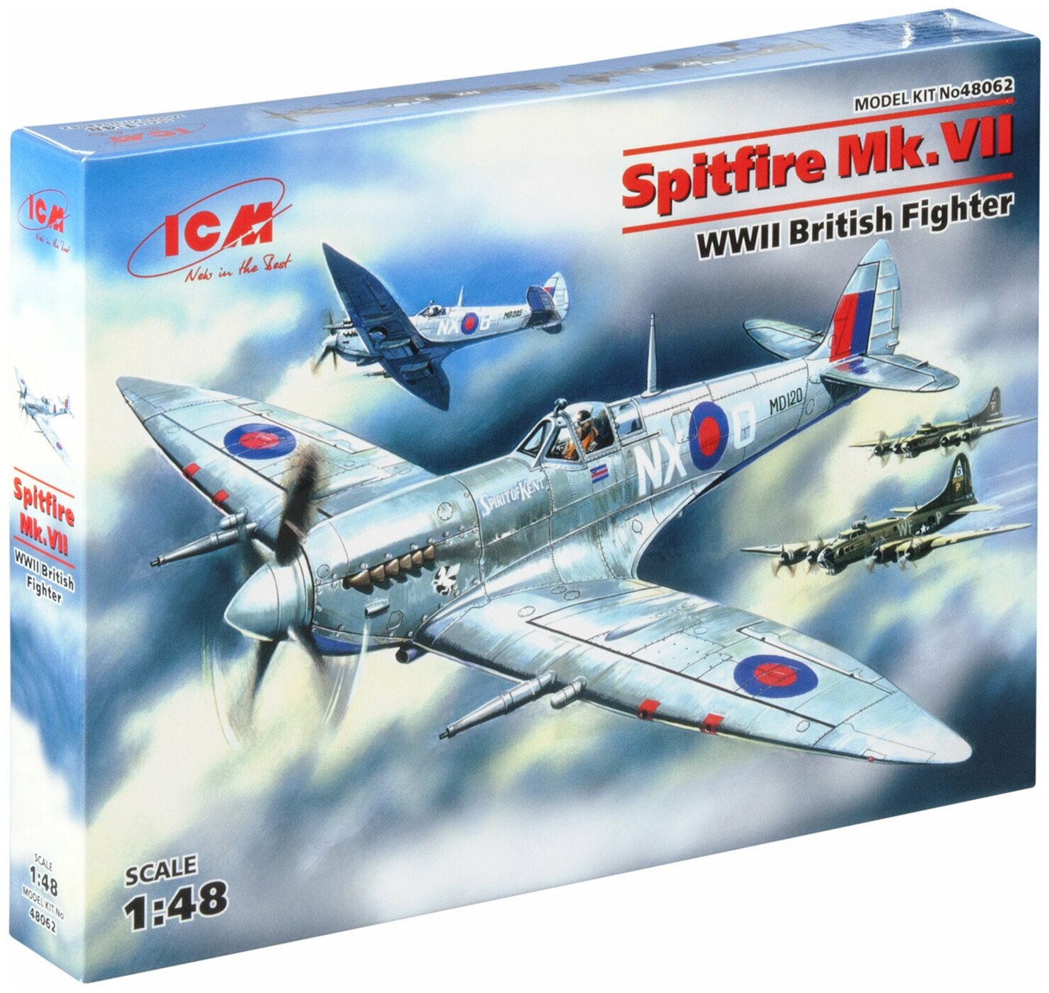 ICM Сборная модель Спитфайр Mk. VII Британский истребитель 2МВ, 1/48 информация:
