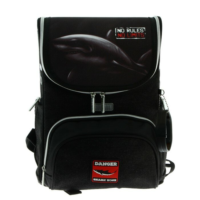 Ранец стандарт Mini Shark, 35 x 26 x 20 см, чёрный, красный 6 064 ₽