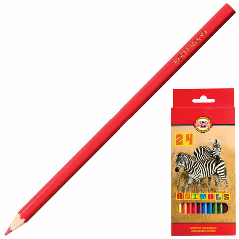 10 цен на Карандаши цветные KOH-I-NOOR "Animals", комплект 20 шт., 24 цвета, грифель 2.8 мм, заточенные, европодвес, 3554/24, 3554024008KSRU