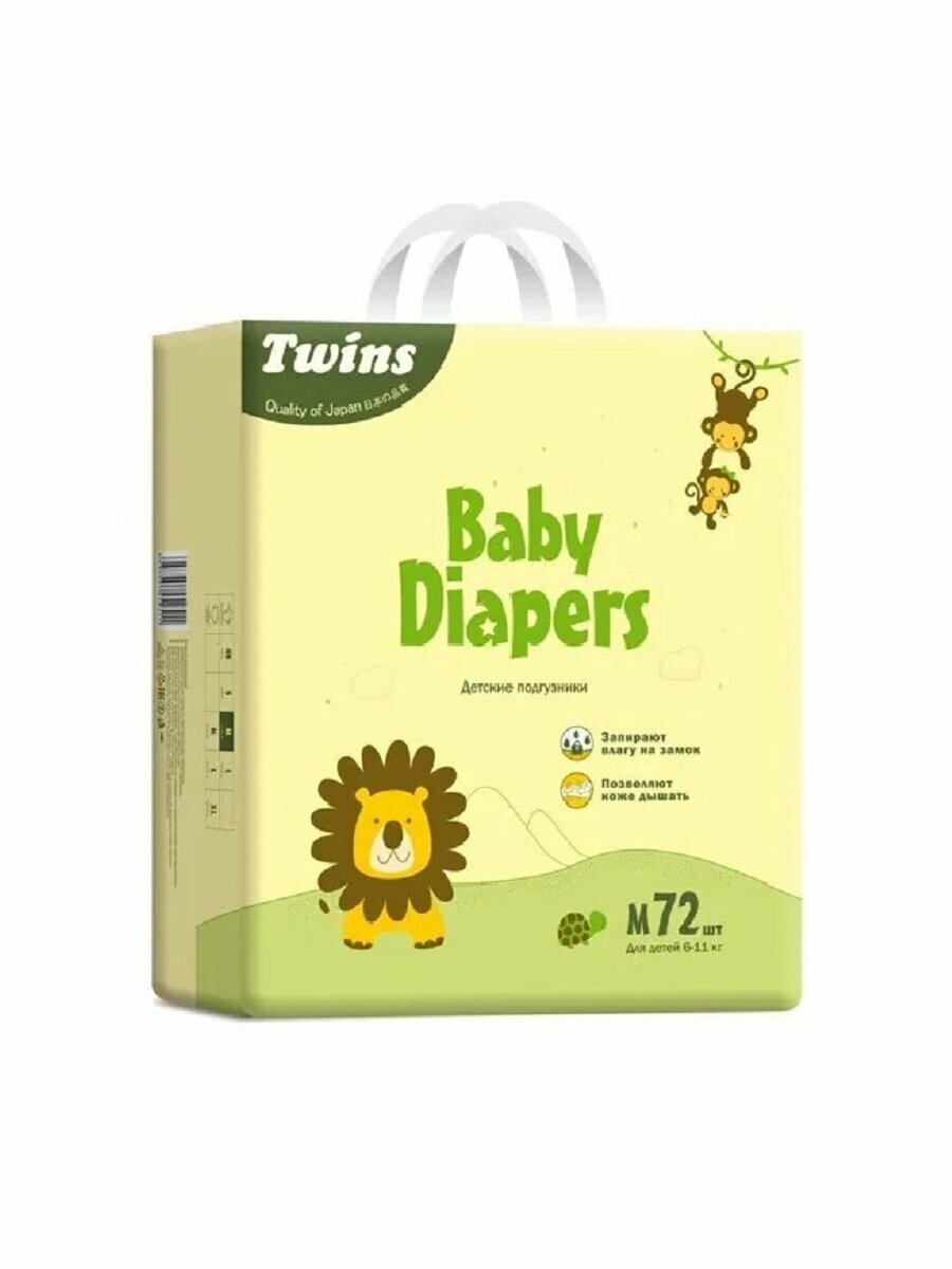 Подгузники детские Twins, размер M, 6-11 кг, 72 шт