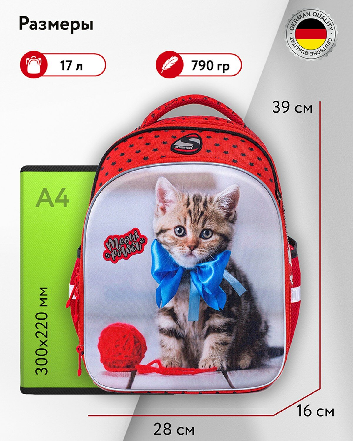 Рюкзак школьный (ранец) для девочки Steiner, полужёсткий, ортопедическая спинка, 2 отделения, фирменный брелок в подарок информация: