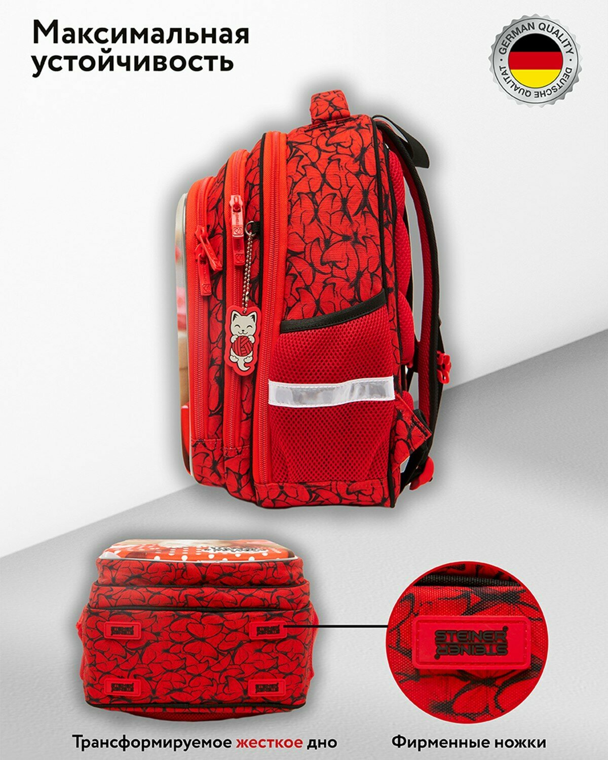 Школьный рюкзак (ранец) для девочки Steiner, полужёсткий, ортопедическая спинка, 3 отделения, фирменный брелок в подарок информация: