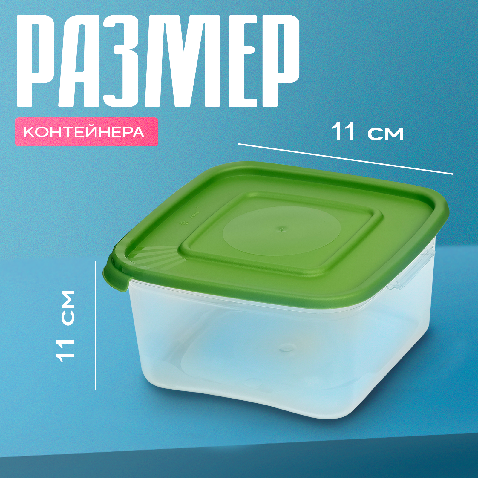Набор контейнеров пищевых Доляна, 5 шт, 460 мл, 11×11×11 см, квадратные, прозрачные, крышки зелёные