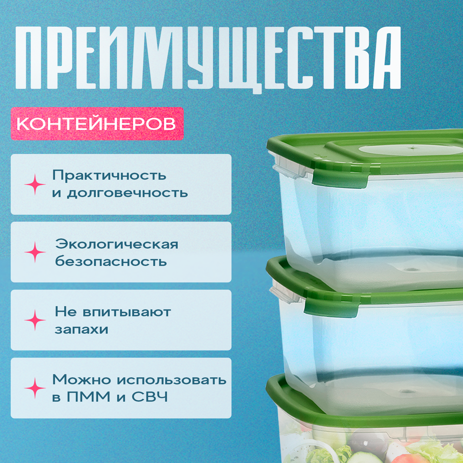 Отзывы на Набор контейнеров пищевых RICCO, 5 шт, 460 мл, 11×11×11 см, квадратные, цвет зелёный