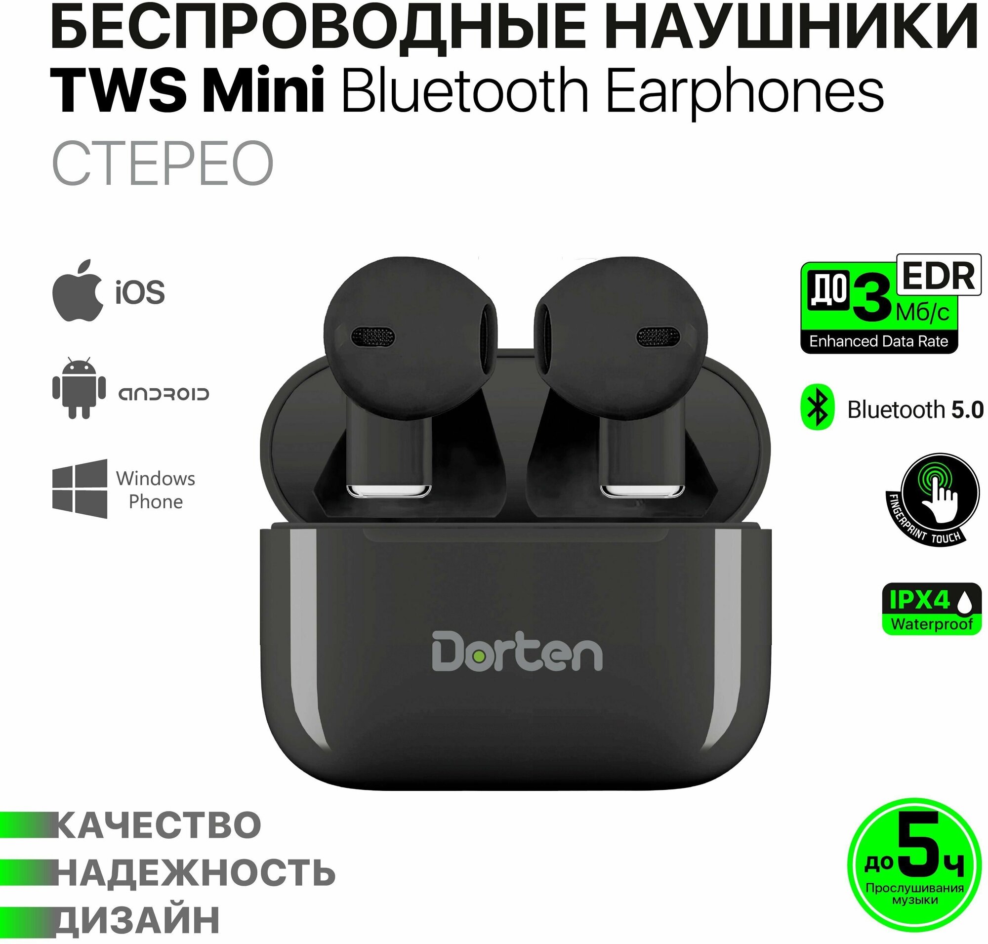 Беспроводные наушники с микрофоном Dorten EarPods Mini Black информация: