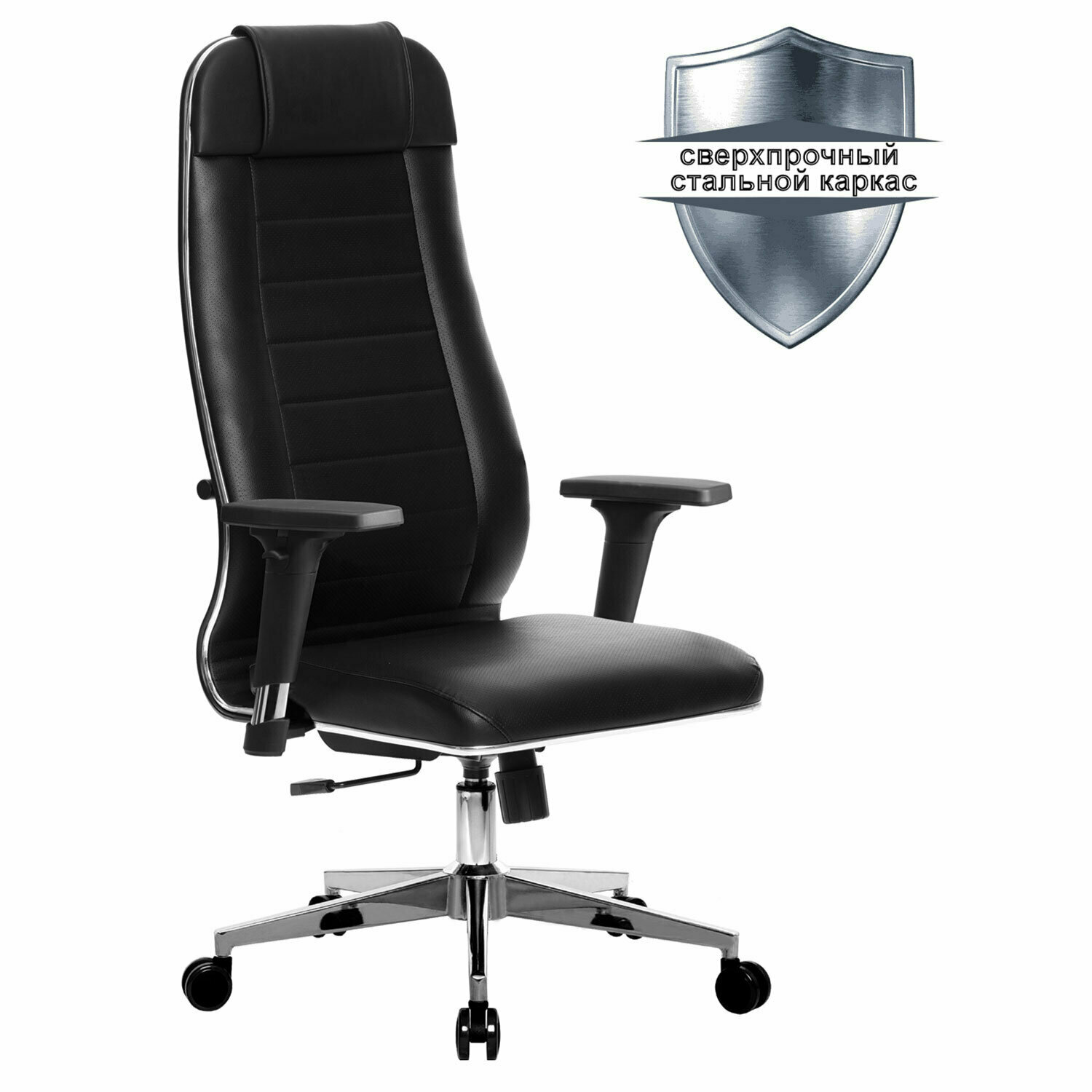 Кресло офисное метта «К-29-2D» хром, рецик. кожа, сиденье и спинка мягкие, черное информация:
