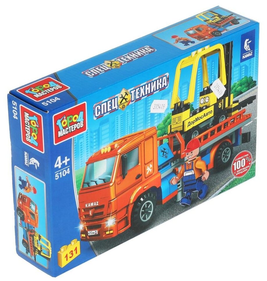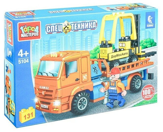 10 цен на Конструктор пластмассовый камаз перевозчик с погрузчиком, 131 дет. кор. 5104-KK (Город мастеров)