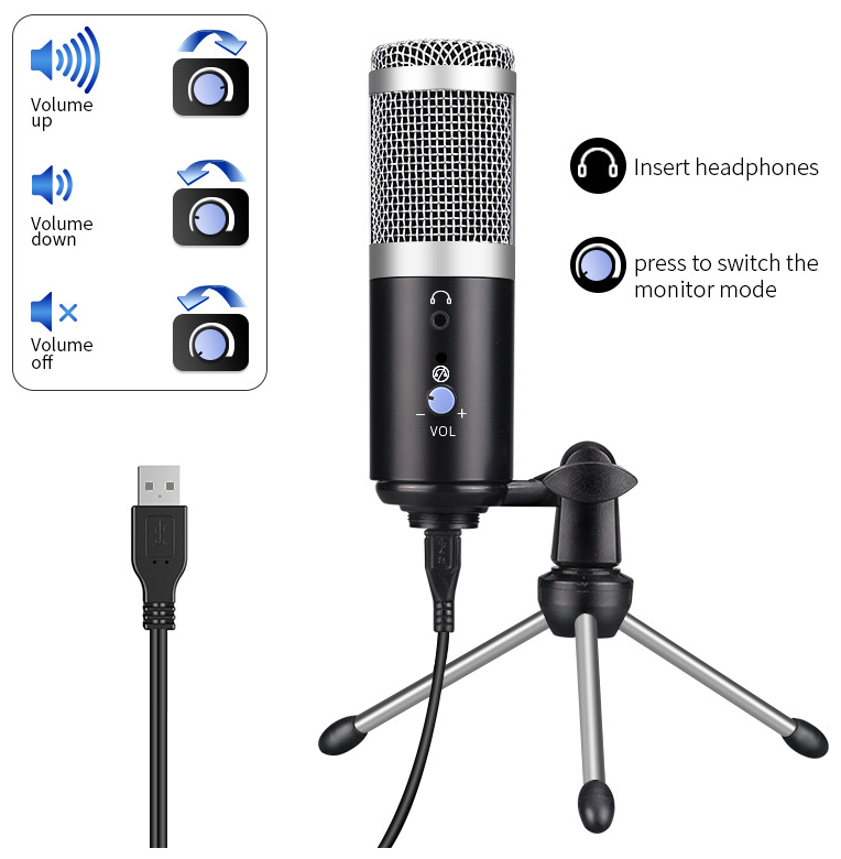 USB емкостная мини-микрофонная стойка для ПК, ноутбука, проводное записывающее устройство