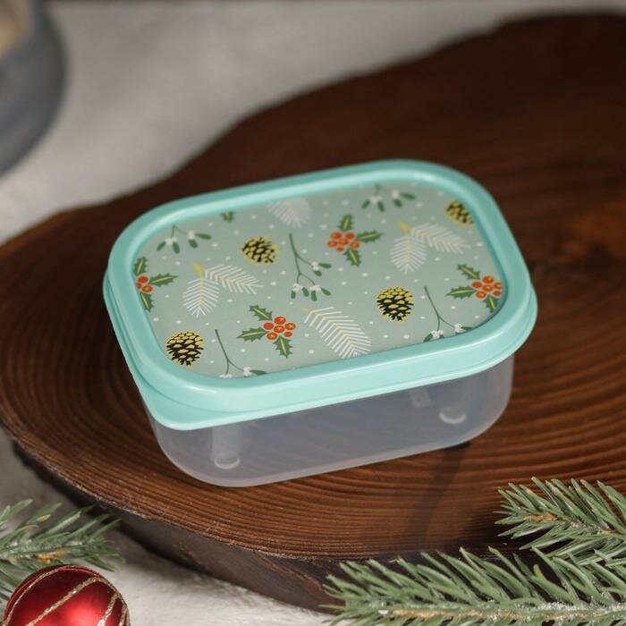 Контейнер пищевой Доляна «Шишки», 150 мл, прямоугольный, цвет бирюзовый информация:
