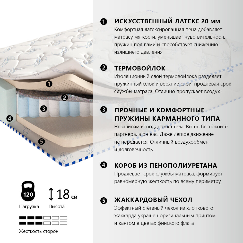 Матрас Corretto Suomi Line Juhla с независимыми пружинами 150х190 см информация: