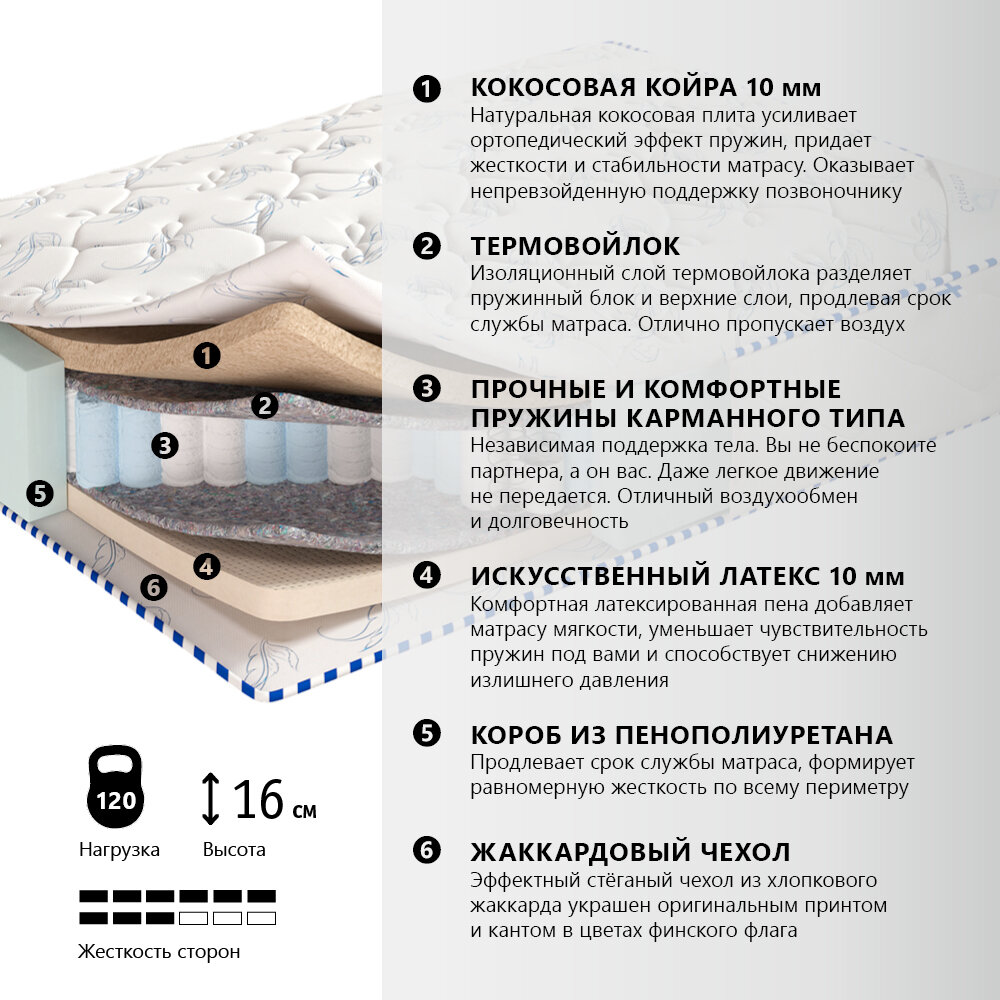 Матрас Corretto Suomi Line Koski с независимыми пружинами 160х195 см