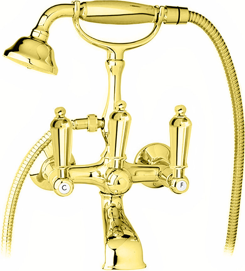 FIRST-VD-03/24-M Смеситель для ванны с ручным душем, исполнение золото, ручки золото