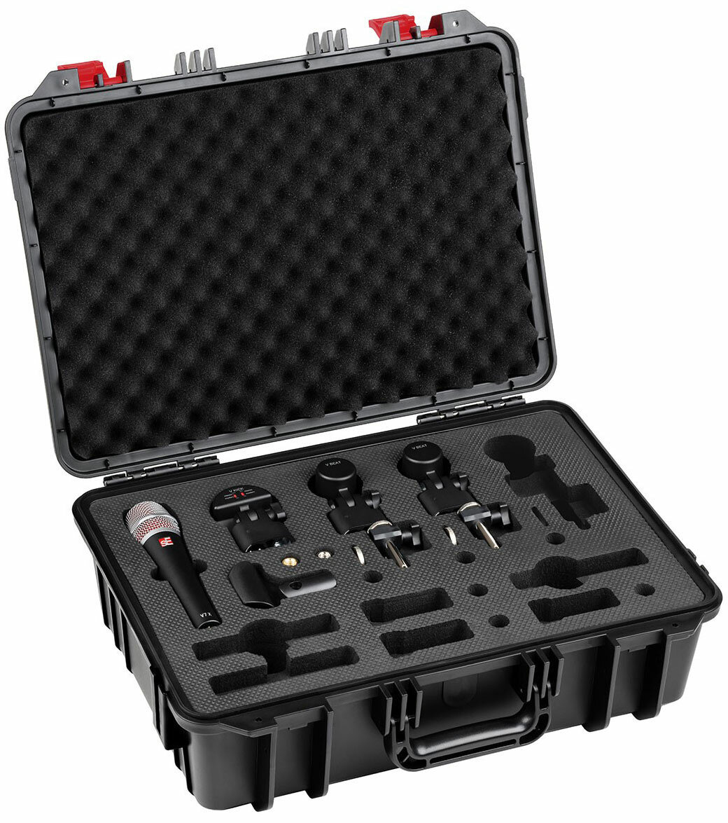 | Подробная комплектация | - 1 микрофон V KICK; - 2 микрофона V BEAT; - 1 крепление V CLAMP; - 1 микрофон V7 X; - пластиковый кейс. |