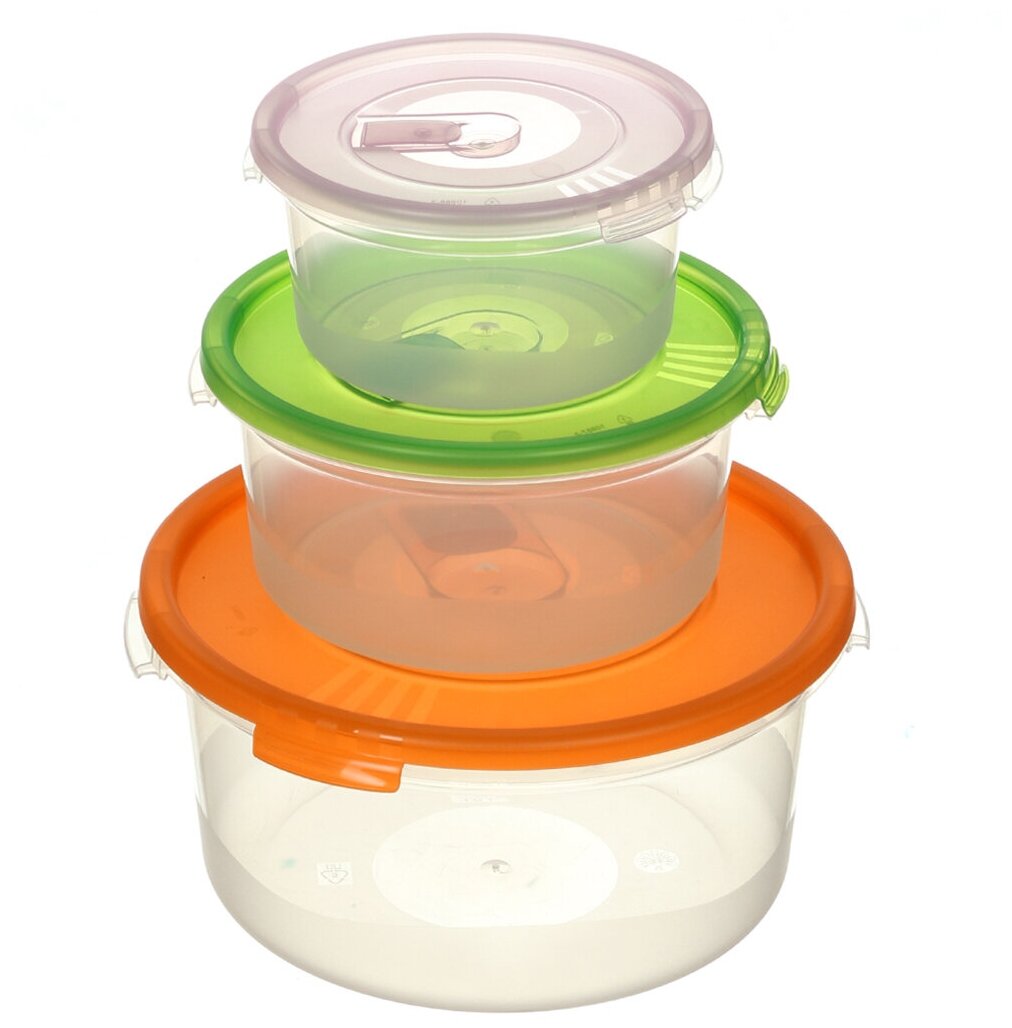Контейнер пищевой пластик, 0.4,0.8,1.6 л, 9.5 см, 3 шт, круглый, Полимербыт, Смайл, 4352203 информация: