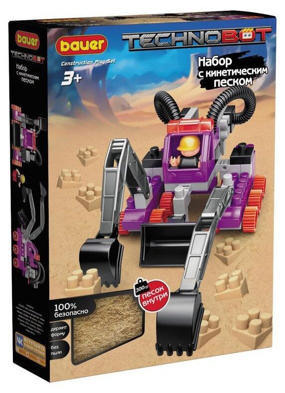 Детская развивающая игрушка конструктор Bauer Technobot Робот и пилот с кинетическим песком. Фиолетовый. 3+ информация: