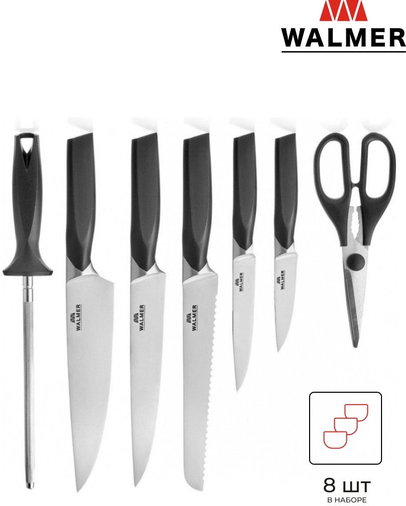 Отзывы на Набор ножей Walmer METHOD с ножницами и мусатом в подставке 8 предметов (W21151539)