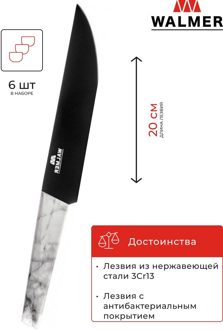 | Комплектация | Шеф нож 20 см; нож для хлеба 20 см; универсальный нож 13 см; разделочный нож 20 см; нож для овощей 9 см; магнитная подставка |