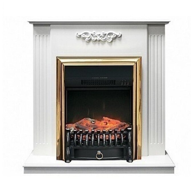 Электрокамин RealFlame Dominica Corner WT МДФ с очагом Majestic, звук потрескивания дров, обогрев, имитация пламени