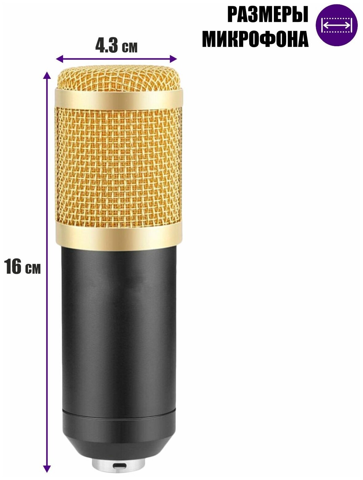 10 цен на Микрофон BM-800 конденсаторный c ветрозащитой, кабелем XLR - Jack 3.5 и переходником для подключения к телефону, черно-золотой.