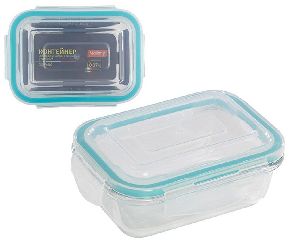 Контейнер MALLONY Diafano 0,37л 15,3х11,1х5,8см прямоуг. жаропр.стекло,пластик,силикон