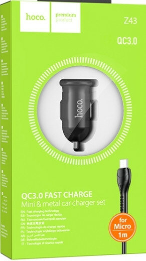10 цен на Автомобильное заряд. устр. Hoco Z43 с шнуром Micro 1USB QC3.0 3A 18W черное