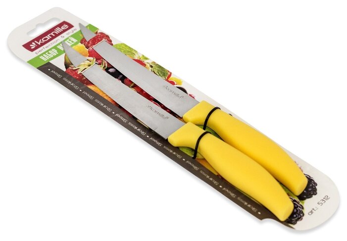 Отзывы на Ножи кухонные 2 предмета из нержавеющей стали Kamille KM 5312 (лезвие 13,5 см, рукоятка 11 см) с пластиковыми ручками (144/36 / голубой)