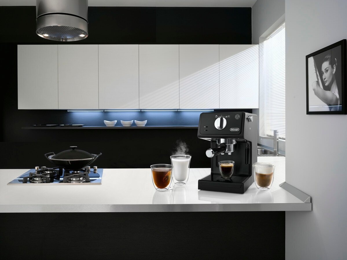 Кофеварка рожковая DeLonghi 1100 Вт, 1 л, ручной капучинатор, черная (ECP31.21)