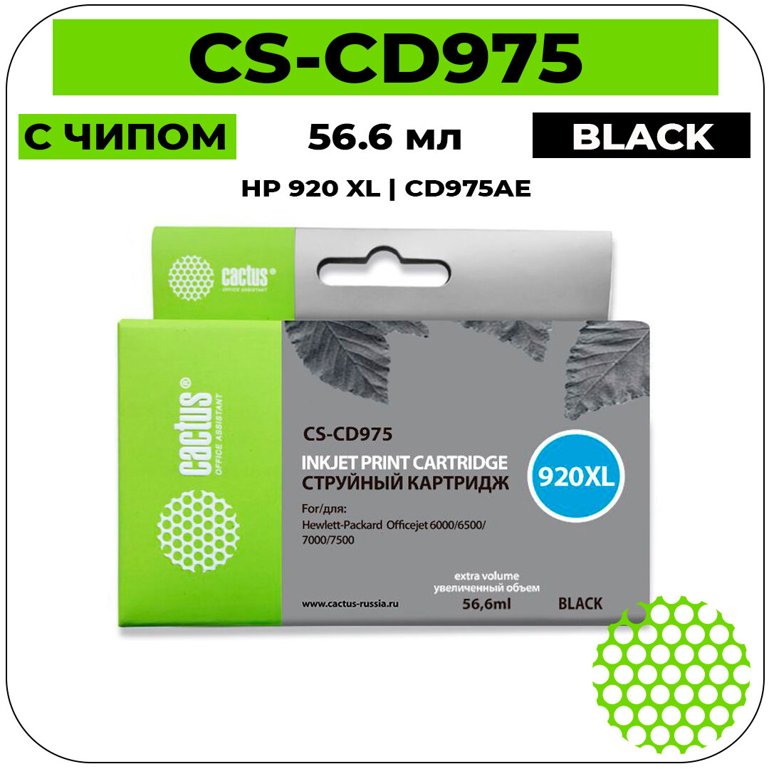 Картридж Cactus CS-CD975 совместимый струйный картридж (HP 920 XL - CD975AE) 45 мл, черный информация: