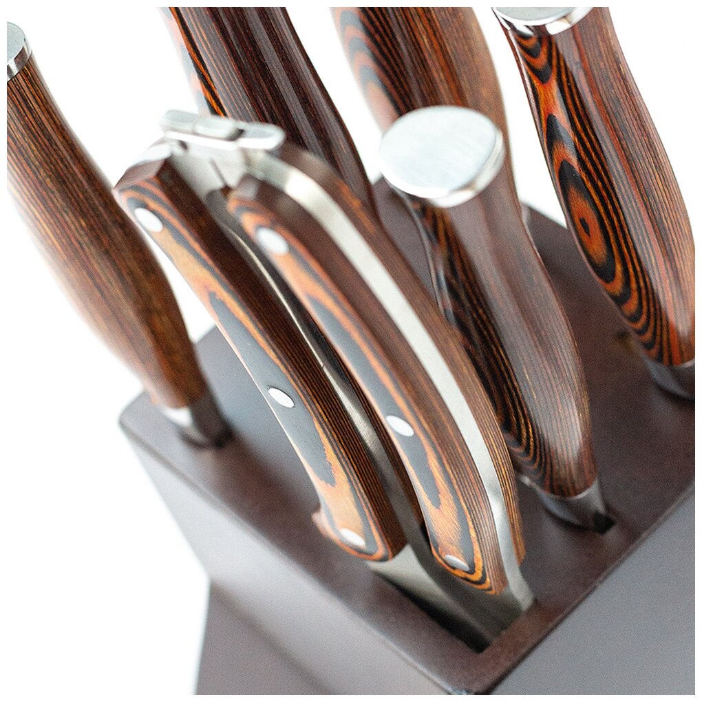 | Типы ножей в наборе | нож сантоку, нож для овощей, универсальный нож, нож для сыра, шеф-нож |