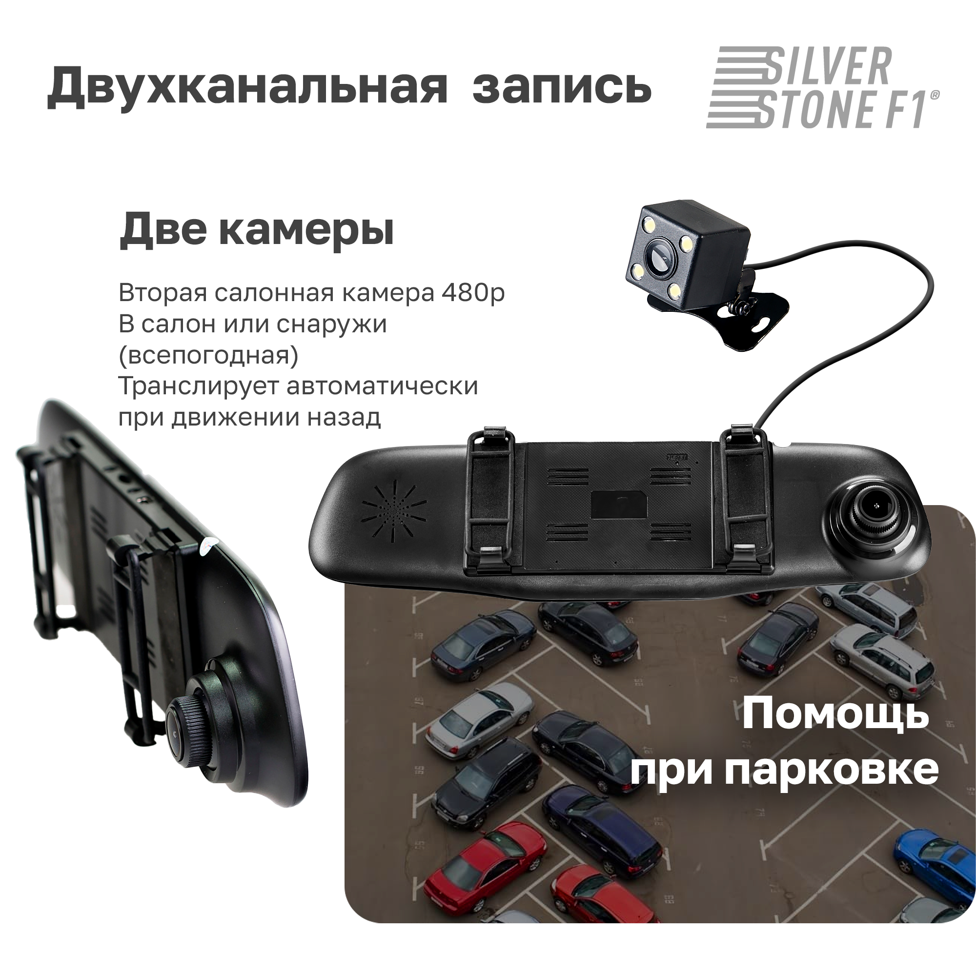 Видеорегистратор в зеркале заднего вида и камерой SilverStone F1 NTK-351Duo