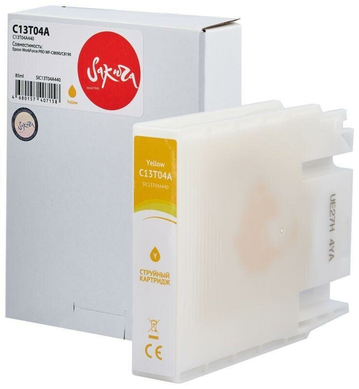 10 цен на Sakura Картридж совместимый Сакура Sakura SIC13T04A440 C13T04A440 желтый экстраповышенной емкости 8K 85 мл