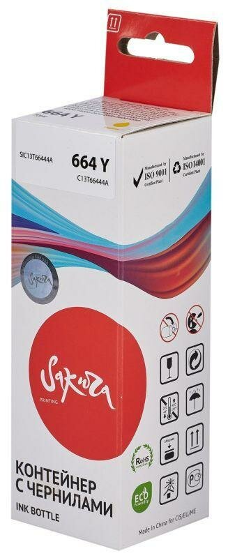 Отзывы на Sakura Картридж совместимый Сакура Sakura SIC13T66444A C13T66444A желтый контейнер с чернилами 6.5K 70 мл