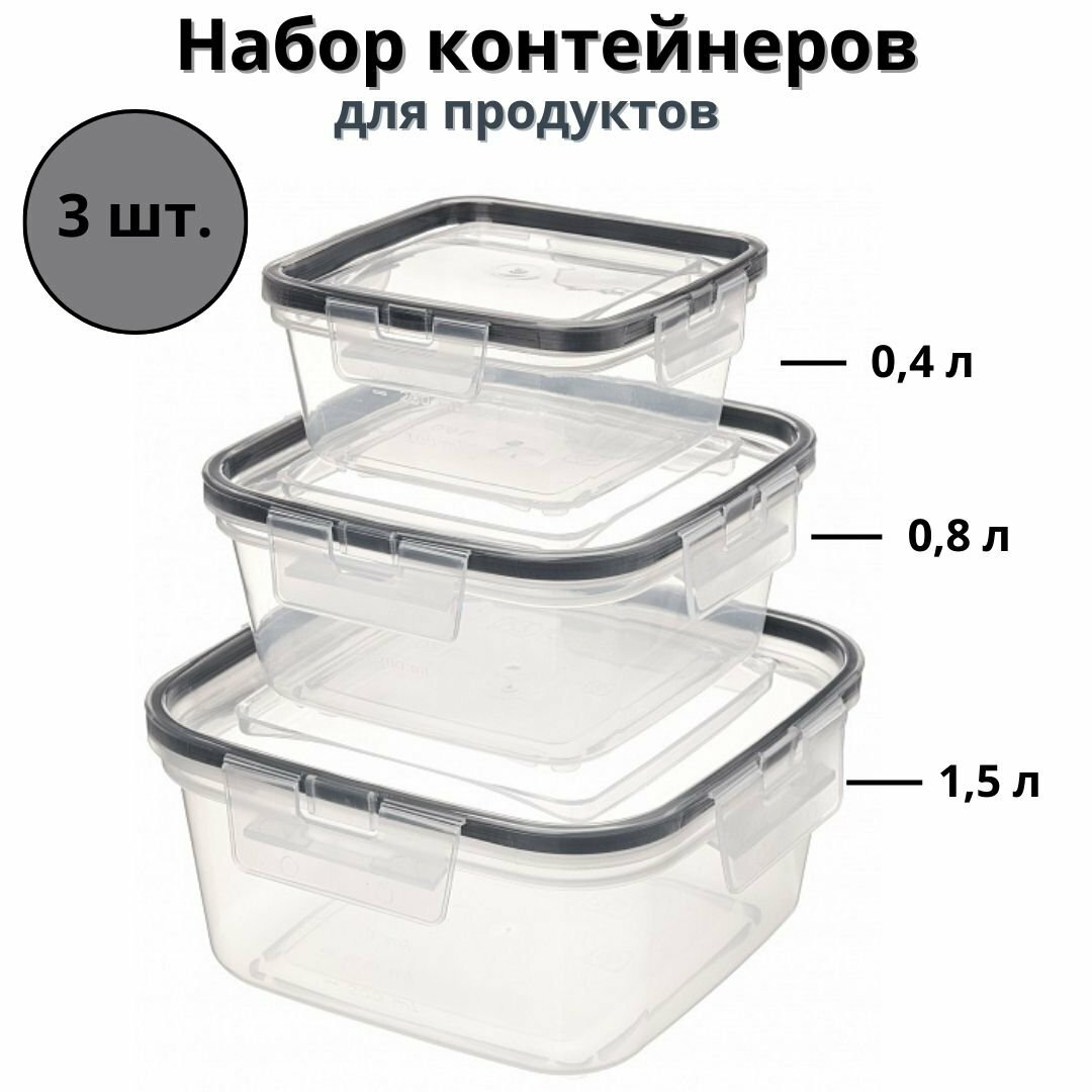 10 цен на Контейнер для продуктов 3 шт. ULMI plastic (0,4 л+0,8 л+1,5 л)