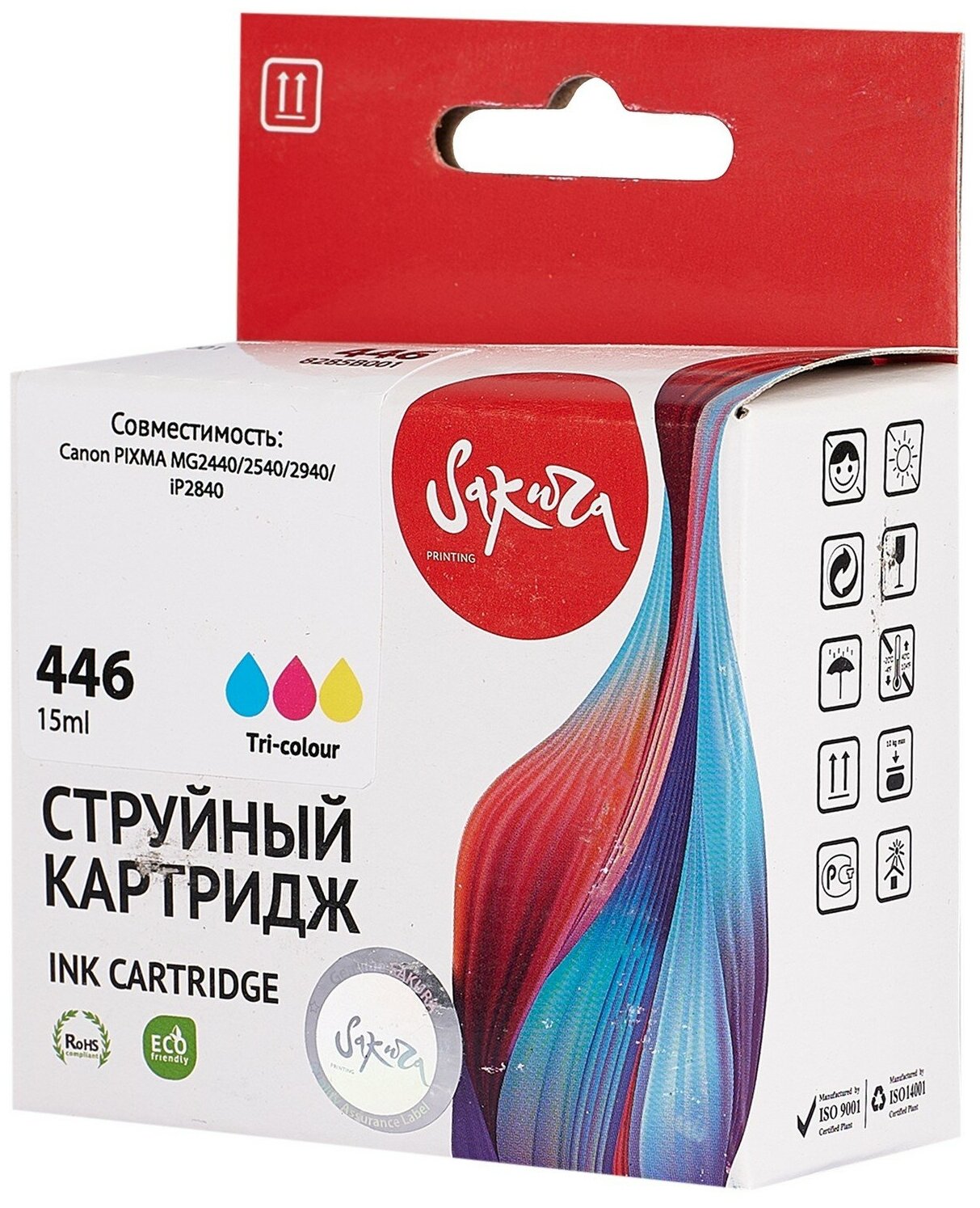 Картридж 8285B001 (446 Color) для Canon, струйный, триколор, 8 мл., 180 страниц, Sakura