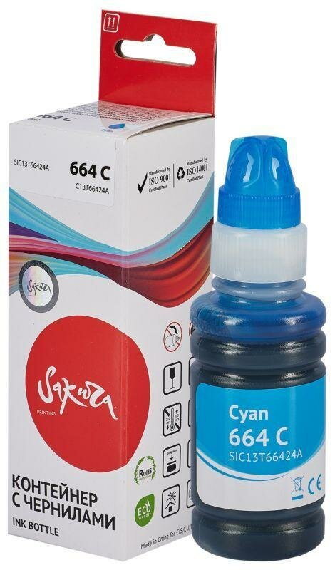 Отзывы на Sakura Картридж совместимый Сакура Sakura SIC13T66424A C13T66424A синий контейнер с чернилами 6.5K 70 мл