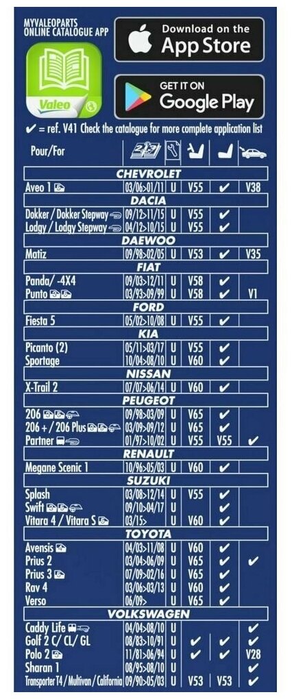 | Модель автомобиля | Alfa Romeo Spider / Chevrolet Captiva / Chevrolet Aveo / Chrysler Grand Voyager / Citroen Berlingo / Chrysler Voyager / Chrysler Town & Country / Dodge Caliber / Daewoo Matiz / Daihatsu Cuore / Daihatsu Trevis / Daewoo Kalos / Fiat Panda / Fiat Idea / Fiat Punto / Fiat Ulysse / Fiat Tipo / Ford Fiesta / Ford Galaxy / Ford Ka / Honda Civic / Honda HR-V / Honda Insight / Hyundai i40 / Hyundai H1 / Hyundai Tucson / Hyundai Trajet / Hyundai Galloper / Hyundai Matrix / Hyundai Atos Prime / Hyundai Elantra / Kia Spectra / Kia Rio / Kia Picanto / Kia Sportage / Kia Cerato / Isuzu Trooper / Kia Carens / Lexus LS / Land Rover Range Rover Sport / Land Rover Discovery / Mazda 6 / Mazda 2 / Mazda 323 / Mazda Premacy / Mercedes-Benz C-class / Mercedes-Benz E-class / Mercedes-Benz G-class / Mercedes-Benz M-class / Mercedes-Benz Vaneo / Mitsubishi Lancer / Mitsubishi Pajero / Mitsubishi Pajero Pinin / Mitsubishi Galant / Nissan X-Trail / Nissan Almera / Nissan Sentra / Peugeot Partner / Opel Vivaro / Opel Corsa / Opel Antara / Opel Astra / Peugeot 206 / Opel Agila / Porsche 911 / Renault Espace / Renault Latitude / Renault Trafic / Seat Alhambra / Suzuki Swift / Suzuki Splash / Subaru Impreza / Suzuki Alto / Suzuki Jimny / Toyota Corolla Verso / Toyota Avensis / Toyota Auris / Toyota Hilux / Toyota Land Cruiser / Toyota Corolla / Volkswagen Caddy / Toyota Yaris Verso / Volkswagen Jetta / Volkswagen Golf / Toyota RAV4 / Toyota Tacoma / Volkswagen Touran / Volkswagen Polo / Volkswagen Transporter / Volkswagen Multivan / Volkswagen Passat / Volkswagen Scirocco / Volkswagen Sharan / Volvo V70 |