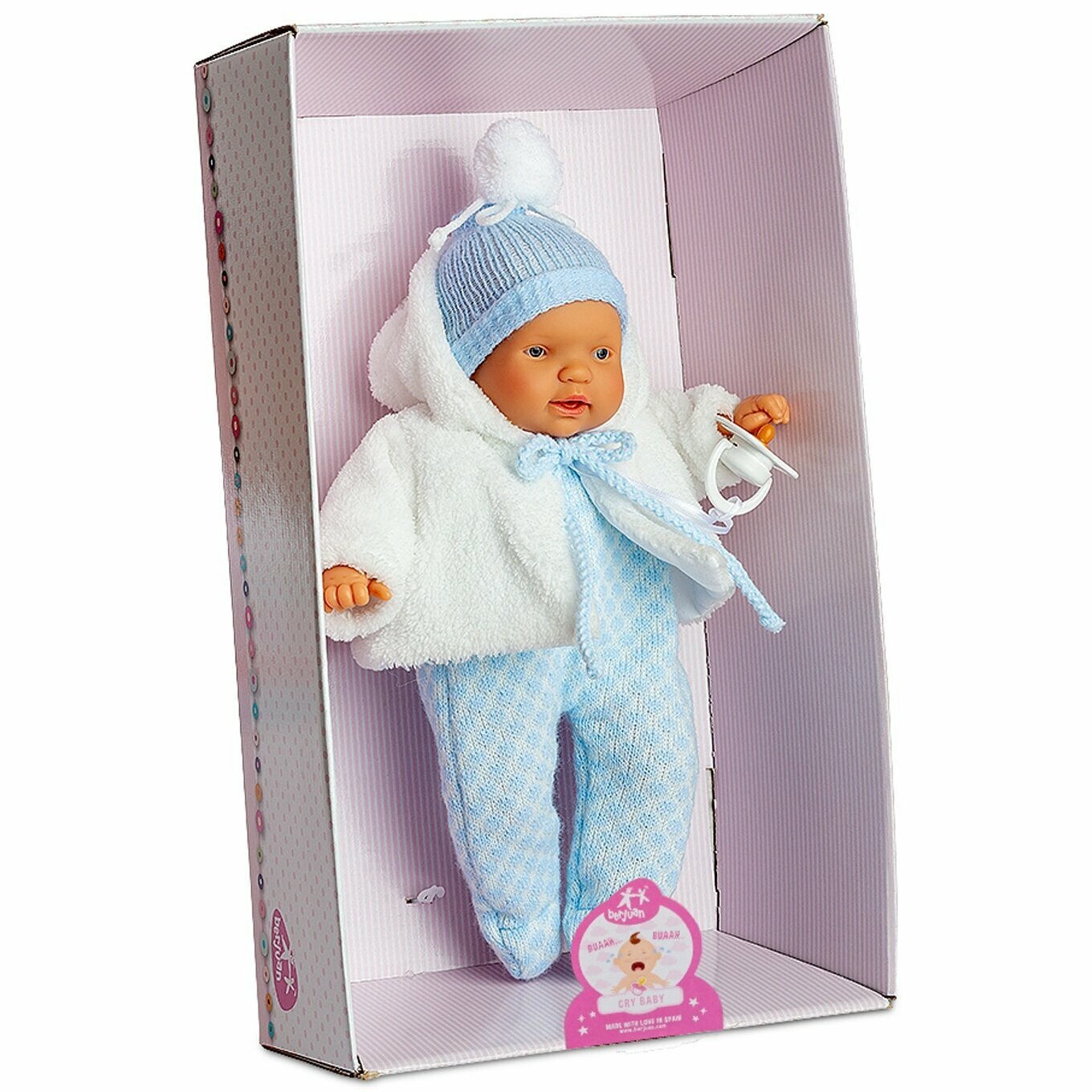 Отзывы на Кукла Берхуан (Бержуан) Мальчик в шапочке и меховой шубке (Berjuan Lloroncete Azul Mecanismo Lloro Chupete)