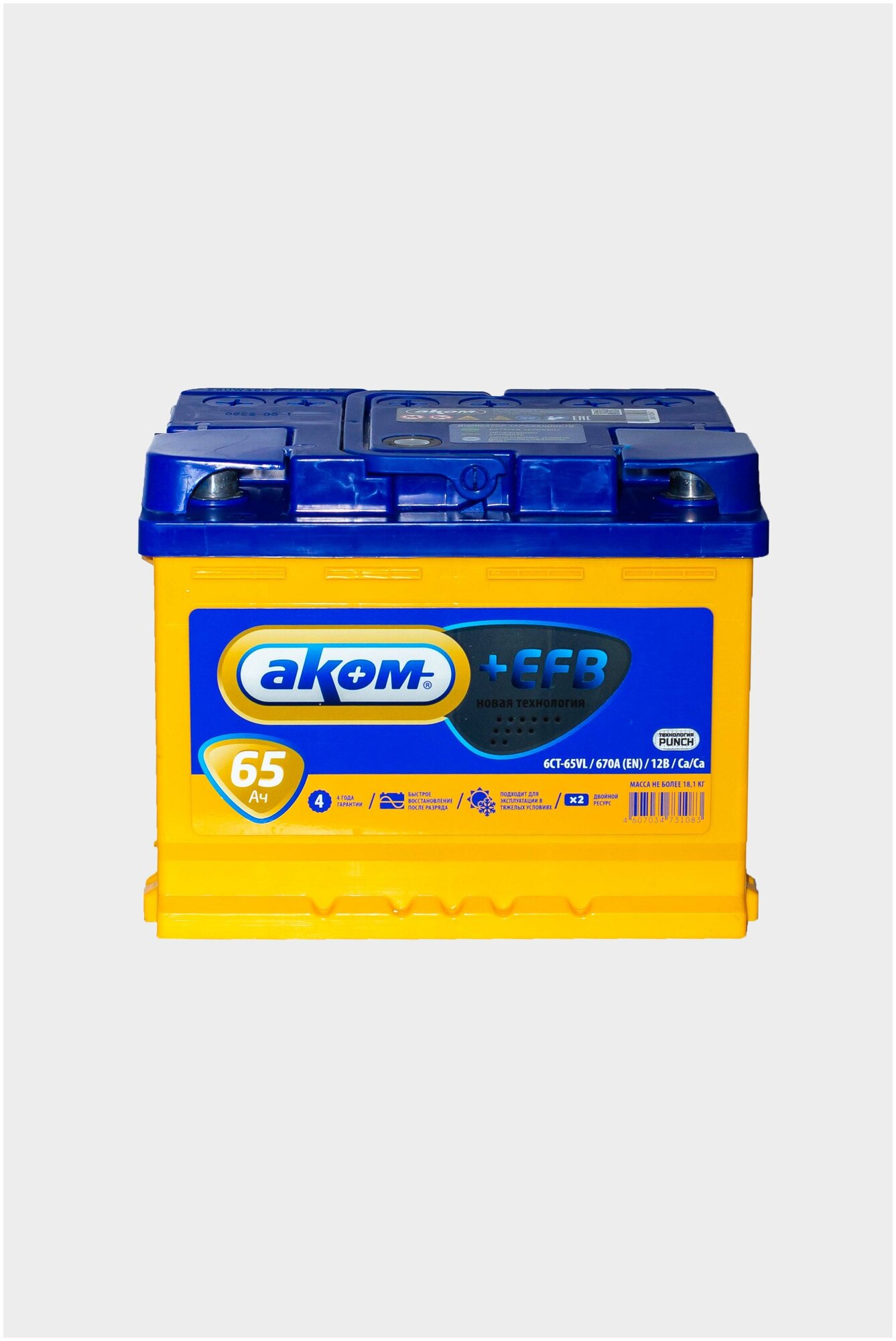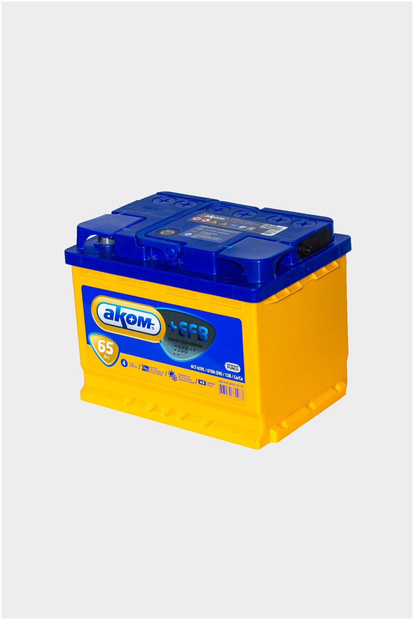 Аккумулятор автомобильный АКОМ (Akom) EFB 65 А/ч 670 А прям. пол. Росс. авто (242x175x190)