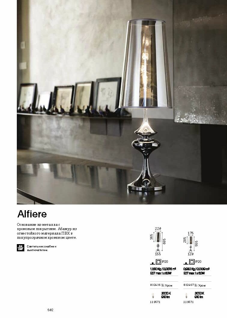 Лампа настольная ideal lux Alfiere TL1 Small макс.1х60Вт IP20 Е27 230В Хром Металл/ПВХ Выключатель Без лампы 032467. информация: