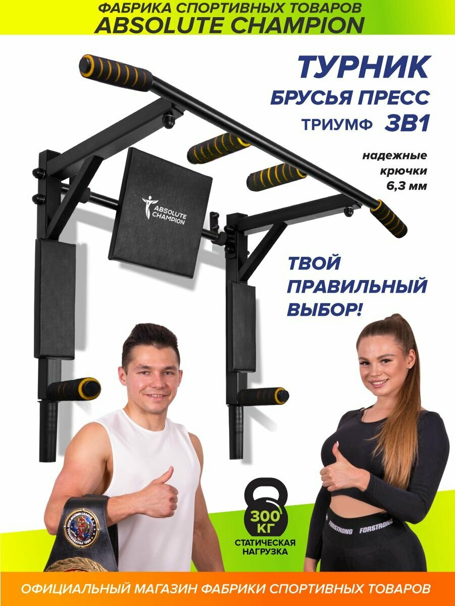 10 цен на Турник-брусья 3в1 Триумф черный (с неопреновыми ручками). Турник+брусья+пресс. Турник на стену 3в1.Турник для дома усиленный Absolute Champion