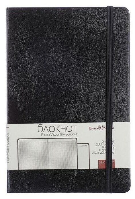 Бизнес - блокнот BrunoVisconti, А5 (142 х 214 мм), черный, 100 л., "MEGAPOLIS JOURNAL", Арт. 3-101/02