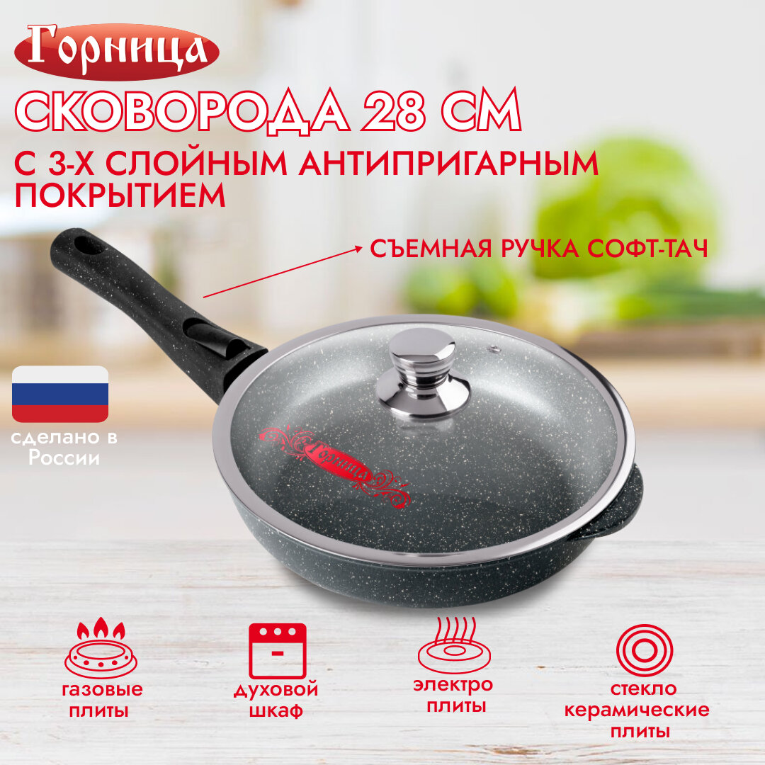 10 цен на Сковорода серия "Гранит" диаметр 28 см высота 5,5 со съемной ручкой с крышкой антипригарное покрытие