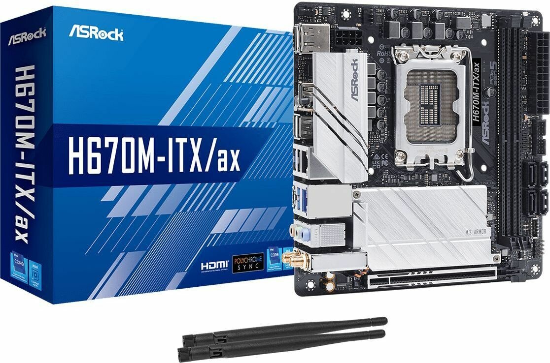 Материнская плата Asrock H670M-ITX/AX Soc-1700 Intel H670 2xDDR4 mini-ITX AC`97 8ch(7.1) 2.5Gg RAID+VGA+HDMI+DP информация: