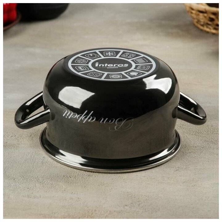 Interos Кастрюля «Металлик», 2,1 л, стеклянная крышка, индукция, цвет чёрный информация: