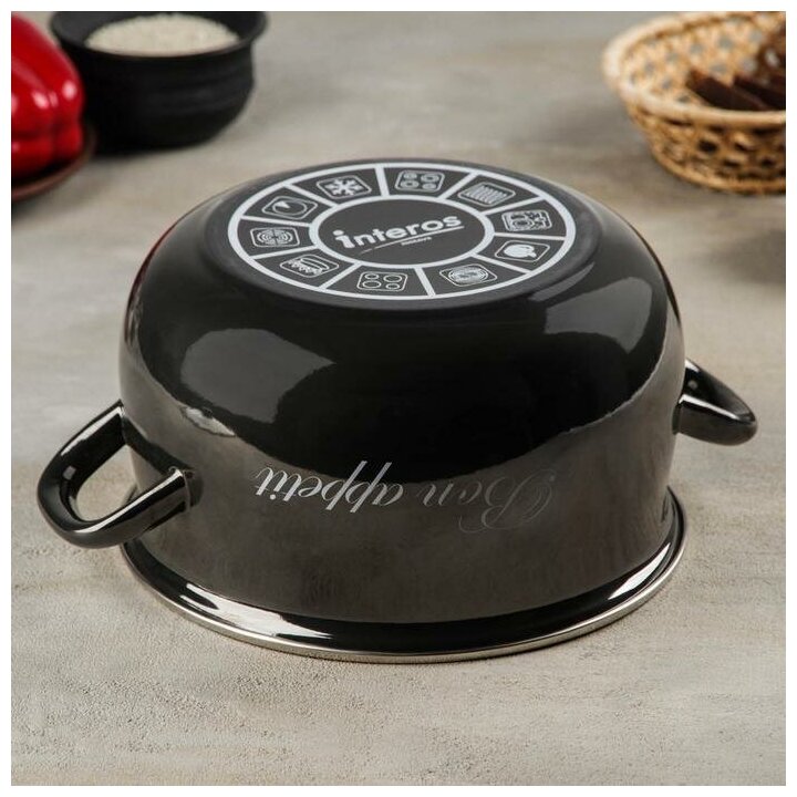 Кастрюля «Металлик», 5,1 л, стеклянная крышка, индукция, цвет чёрный информация: