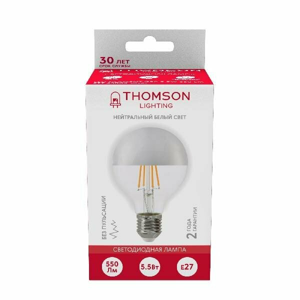Светодиодная лампа Hiper THOMSON LED FILAMENT G80 5,5W 550Lm E27 4500K silver информация: